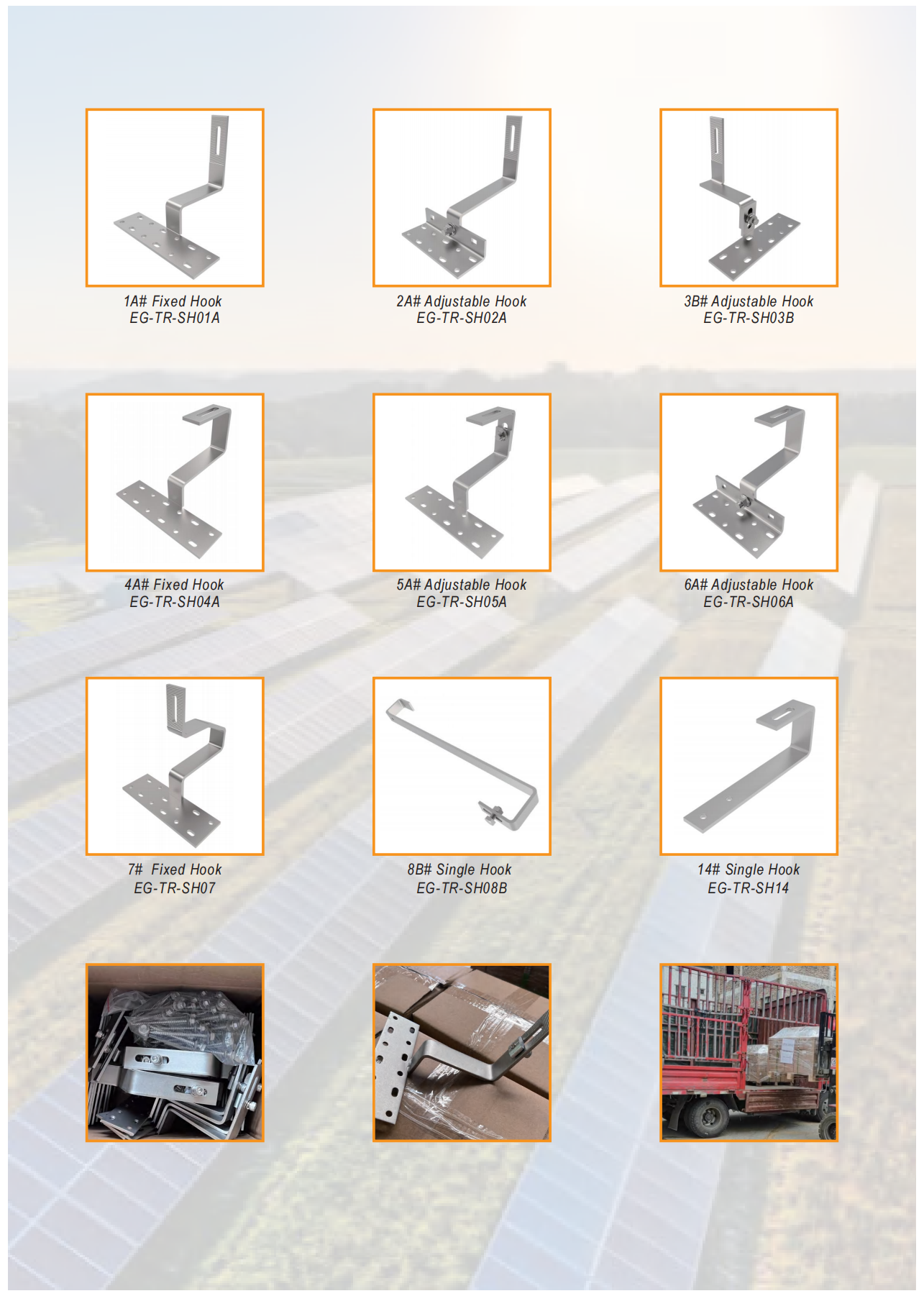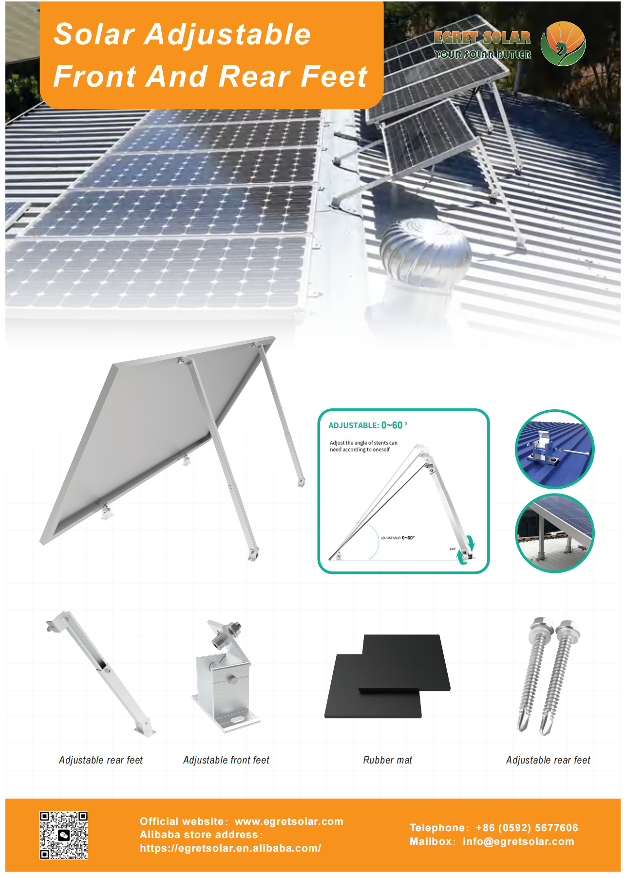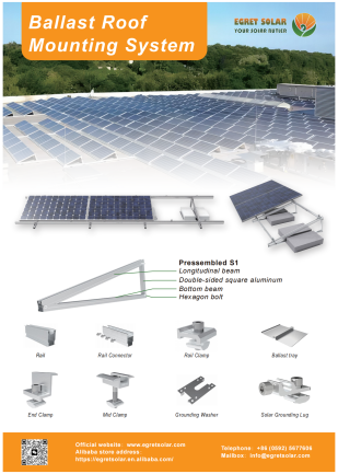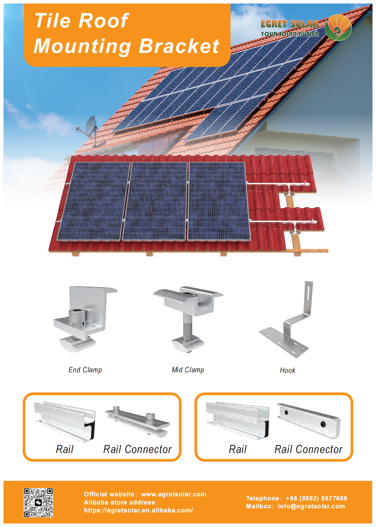 EGRET सौरले प्रदर्शनीमा धेरै नमूनाहरू ल्याए। मुख्य उत्पादनहरू प्रयोजित बिभिन्न वातावरण अनुसार फरक छन्। त्यहाँ छोटो रेल कोष्ठक प्रणालीहरू छन्, l फिट कोष्ठक प्रणालीहरू र समायोज्य अगाडि र पछाडिको खुट्टाहरू जुन धातुको छानामा प्रयोग गर्न सकिन्छ; कार्बन स्टील माउन्टिंग प्रणाली र सौर कार्पोर्टको लागि एल्युमिनियम क्यासपोर्ट माउन्टिंग प्रणाली; ग्राउन्ड प्रयोगको लागि डबल स्तम्भको साथ एकल स्तम्भ र ग्राउन्ड माउन्टिंग प्रणालीको साथ ग्राउन्ड माउन्टिंग प्रणाली; टाइल छत माउन्टिंग कोष्ठक सामान्यतया टाइल छानाका लागि प्रयोग गरिन्छ, र हुक र रेललाई वास्तविक अवस्था अनुसार चयन गर्न सकिन्छ; गिल्लाहरू छत माउन्टिंग प्रणाली र ट्रिडड प्रणाली प्राय: समतल छतहरूको लागि प्रयोग गरिन्छ। हामीलाई प्रमाणीकरण परिदृश्य, हावाको गति, हिउँ लोड, बजेट, बजेट, आदि बताउनुहोस् र हामी तपाईंको लागि डिजाइज गर्नेछौं। तपाईं आफ्नो सबै हृदय संग हामीलाई विश्वास गर्न सक्नुहुन्छ।