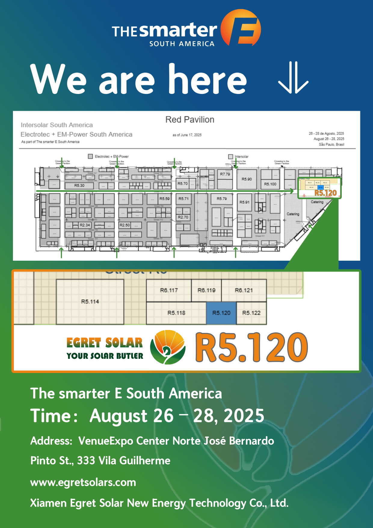 नयाँ एक्टिभरको रूपमा नयाँ ऊर्जा क्षेत्रमा,Xiamen Egret सौर्य नयाँ ऊर्जा टेक्नोलोजी को CO. LTDब्राजिलमा ब्राजिलमा ब्राजिलमा ब्राजिलमा यसको मुख्य उत्पादनहरू र प्राविधिक समाधानहरू प्रदर्शन गर्ने छन।